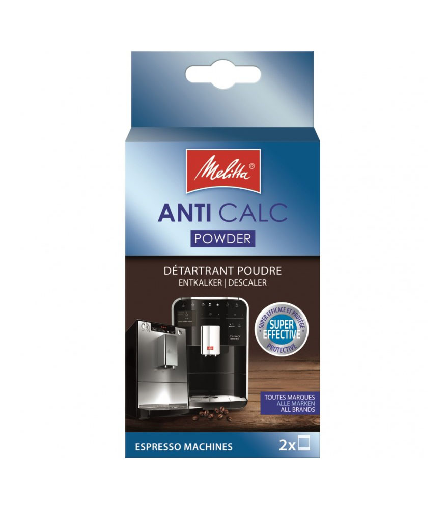 Αφαλατικό Mellita σε σκόνη για μηχανές espresso. Η συσκευασία περιέχει 2 σακουλάκια των 40 γραμμαρίων.