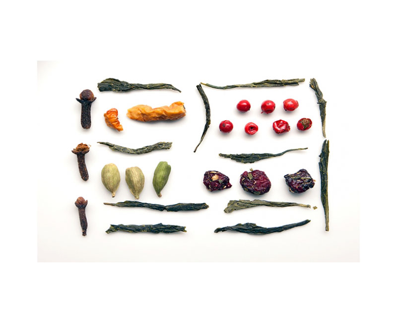 O Δρόμος του Τσαγιού προσφέρει έτσι στους πελάτες του τις πιο γνώριμες μεσογειακές γεύσεις συνδυασμένες με τα τσάγια της Ανατολής. Τα βότανα, τα άνθη και τα φρούτα της Μεσογείου καθώς και τα μπαχαρικά, βρίσκουν με το πιο φυσικό τρόπο την θέση τους στα μίγματα των αρωματισμένων τσαγιών. Το χαμομήλι, το τσάι του βουνού, η λεβάντα, το φασκόμηλο, το δεντρολίβανο, καθώς και η κανέλα, η μαστίχα Χίου, το γαρύφαλλο μαζί με το σύκο, το βερίκοκο, το πορτοκάλι και τα πλούσια αρωματικά άνθη όπως το τριαντάφυλλο και το γιασεμί παντρεύονται με τα μαύρα, τα πράσινα και τα λευκά τσάγια των «κήπων» της Άπω Ανατολής.